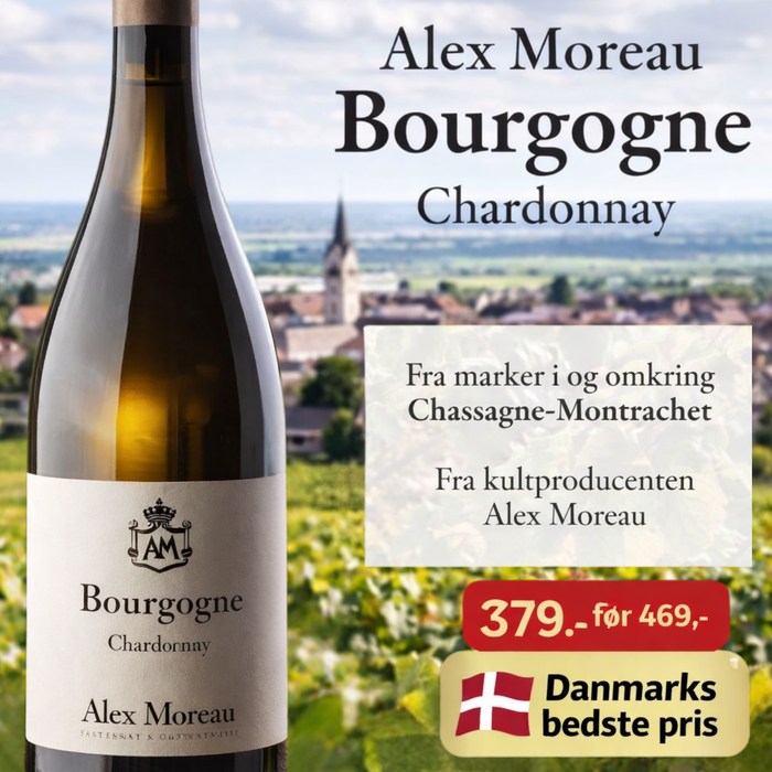 Denne Bourgogne Blanc fra Alex Moreau er et klassisk og meget præcist udtryk for hvid Bourgogne, fremstillet på 100 % Chardonnay fra marker i og omkring Chassagne-Montrachet. Her er fokus på renhed, balance og terroir – ikke på overdreven fad eller kosmetisk vinmageri.